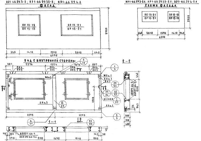 НР1-66.29.35-5л   Наружная стеновая панель рядовая по Серии 1.132-1.