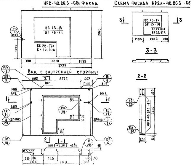 НР2-40.26.3-6бл    Наружная стеновая панель рядовая по Серии 1.132-2.